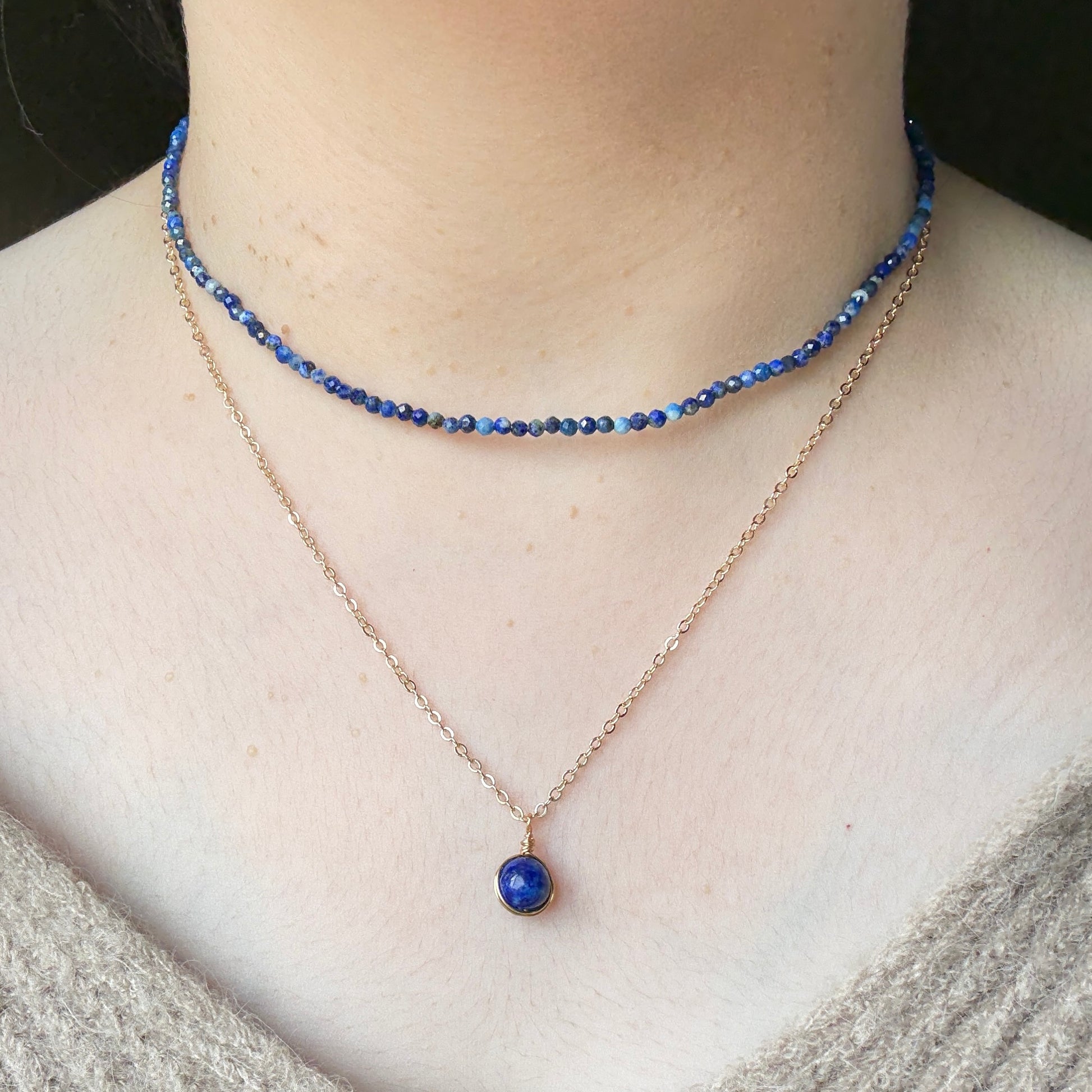 Lapis Lazuli & Mother-of-Pearl Necklace with Gold Accents